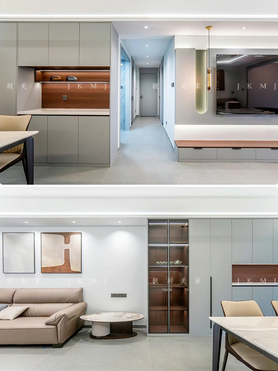 全屋高端定制:柜體板材18厚杉木實(shí)芯板,柜門有pet膚感、高光、超晶,五金使用原裝進(jìn)口奧地利百隆五金