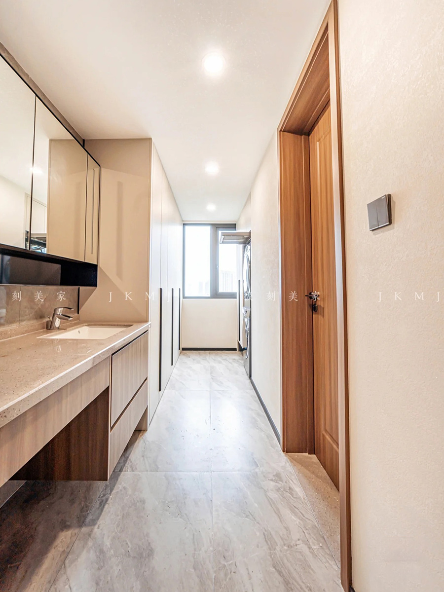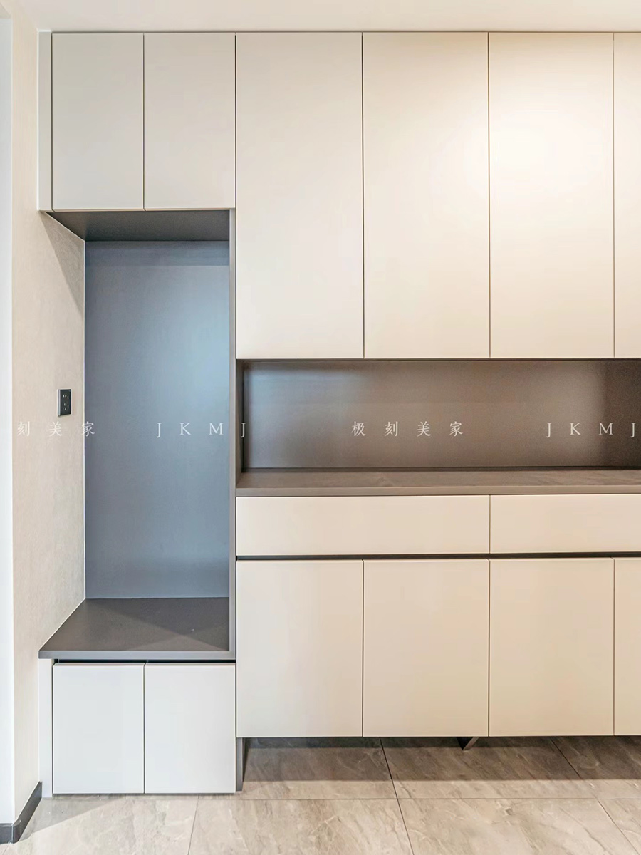 臥室采用一門到頂設(shè)計,書房采用分段式無拉手設(shè)計,增加實用性