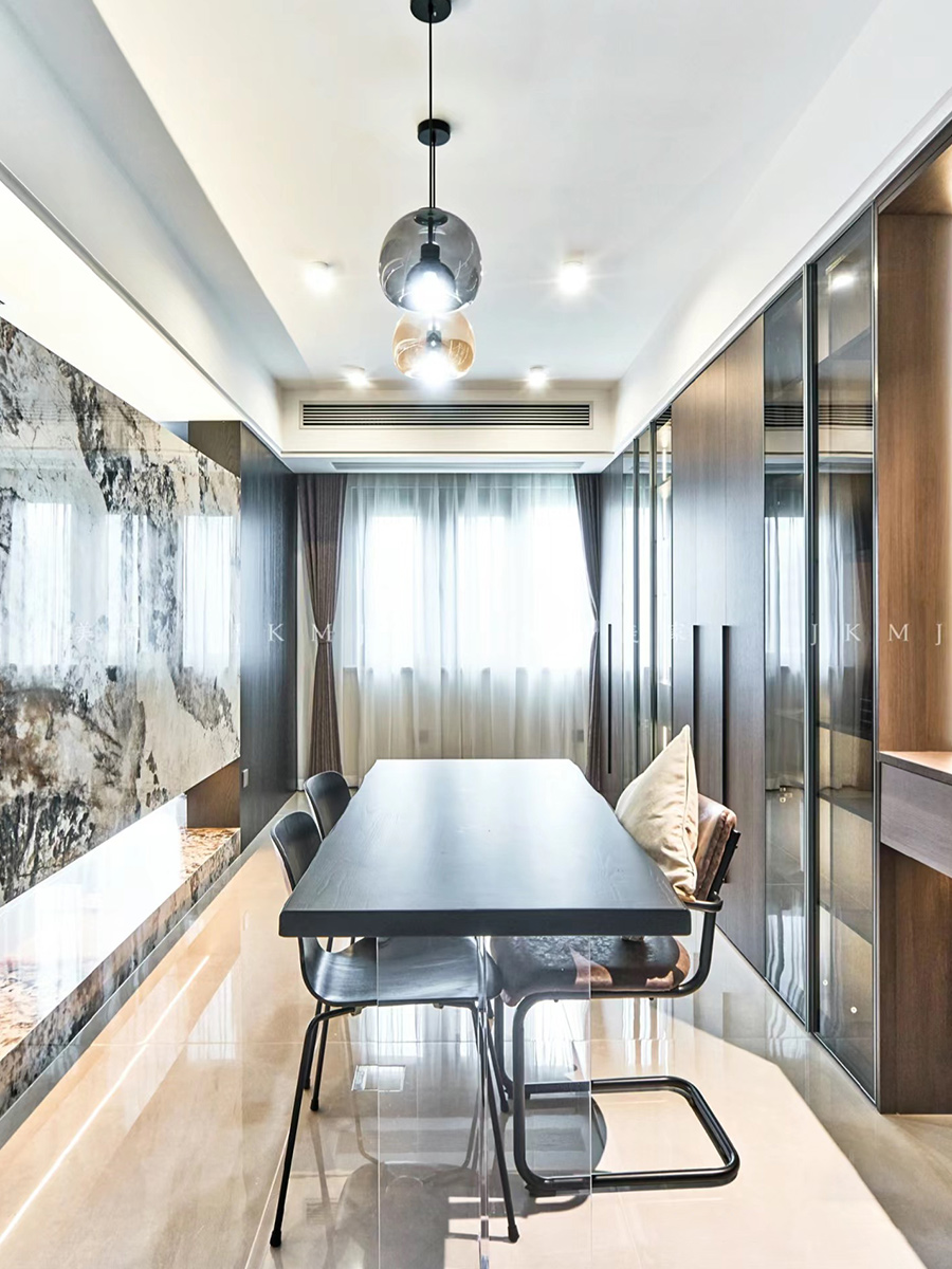 主臥利用動(dòng)線做滿墻衣柜,滿足業(yè)主的收納需求