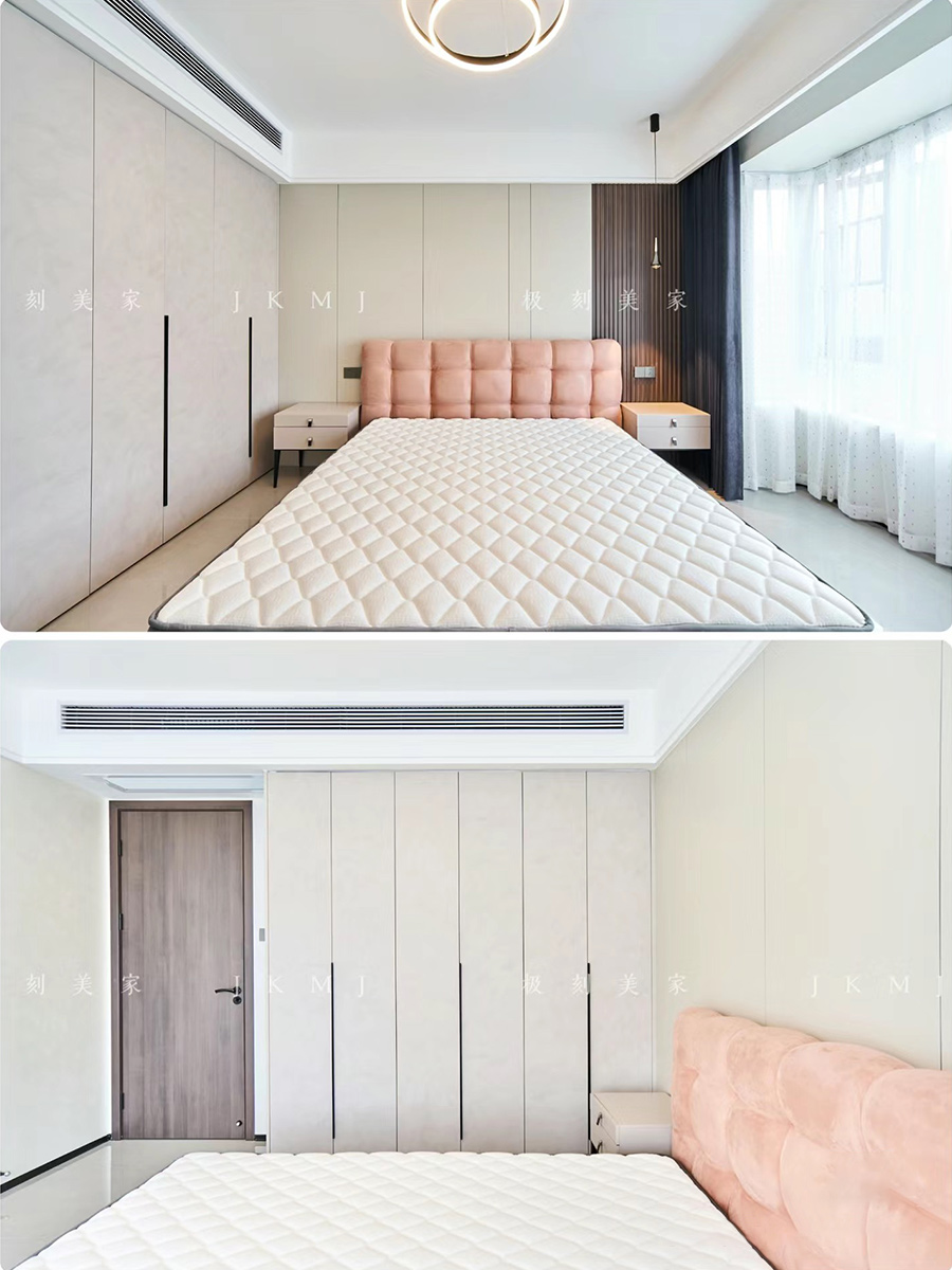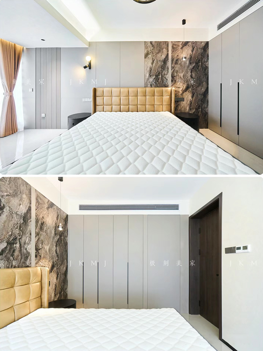 臥室延用同色系做背景墻,整體更有層次感