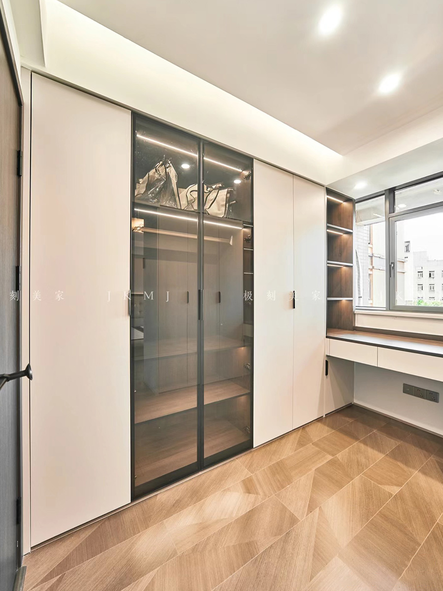 主臥做套房設(shè)計(jì),衣帽間做玻璃柜門,整體更有層次感