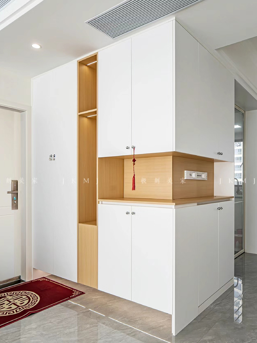 入戶柜與餐邊柜形成L型設(shè)計,更大限度的利用空間