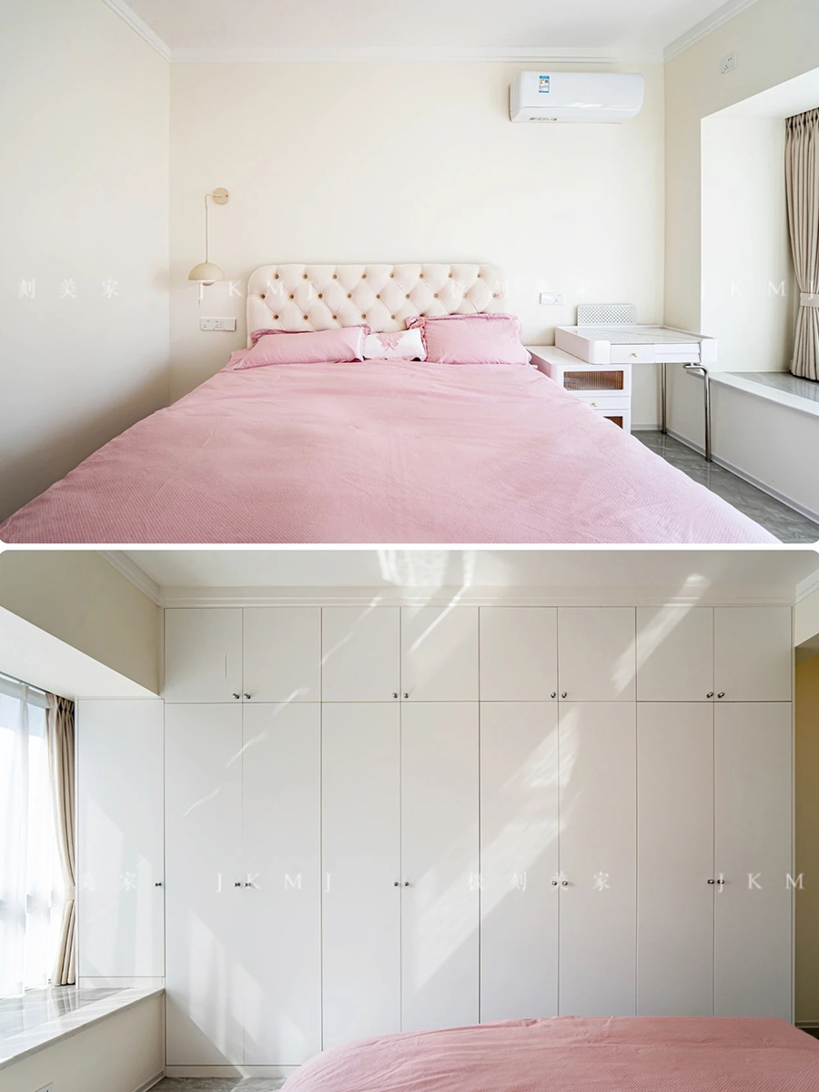 臥室柜采用琥珀白搭配軟裝家具,營造出溫馨自然的氛圍
