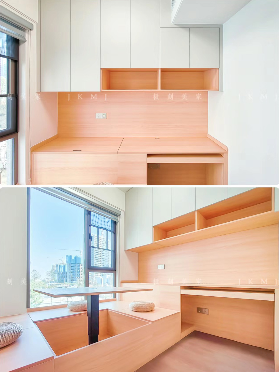 臥室榻榻米+升降臺(tái)設(shè)計(jì),集休閑娛樂于一體,粉色更有少女心