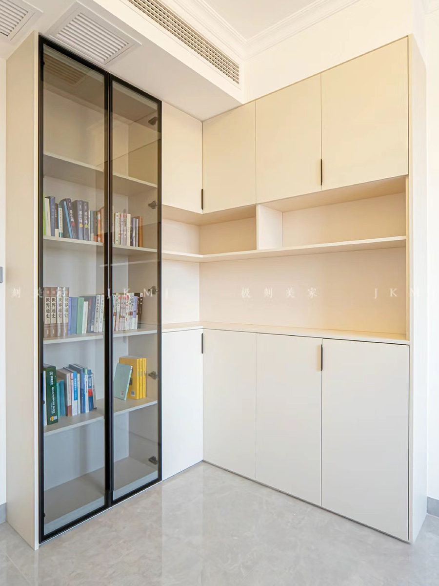 全屋高端定制:柜體板材18厚杉木實芯板,柜門有pet膚感、高光、超晶、五金使用原裝進口奧地利百隆五金