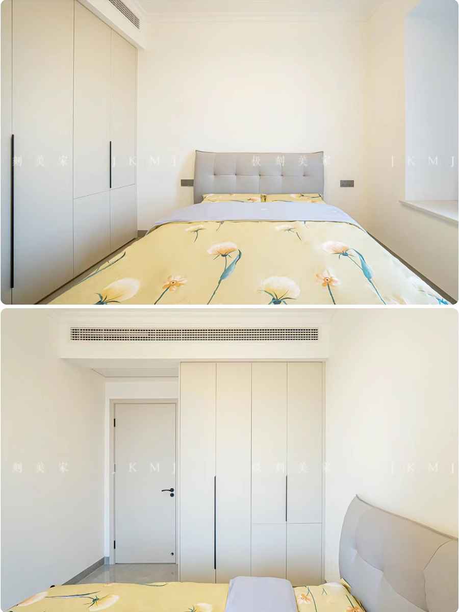 臥室柜做轉(zhuǎn)角柜,更大限度的利用空間,滿足收納需求