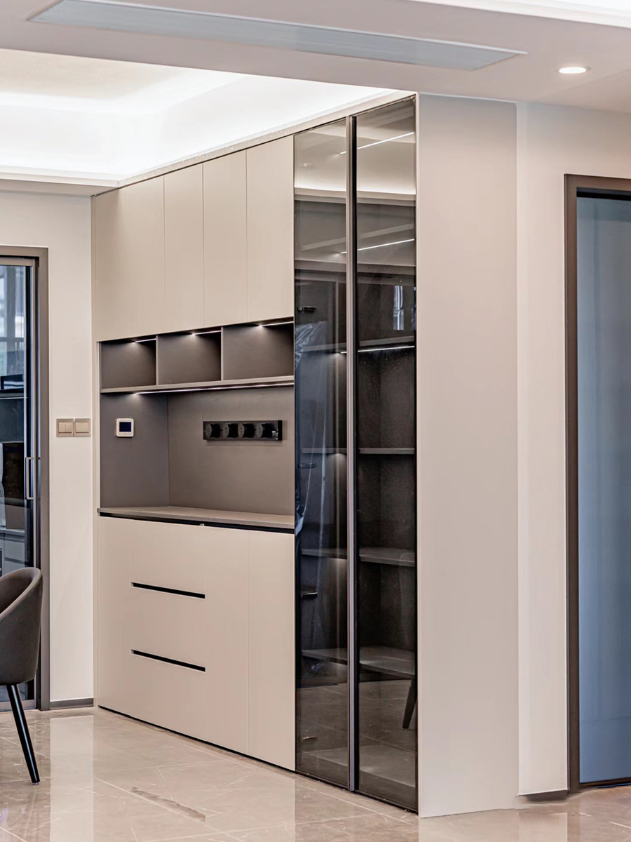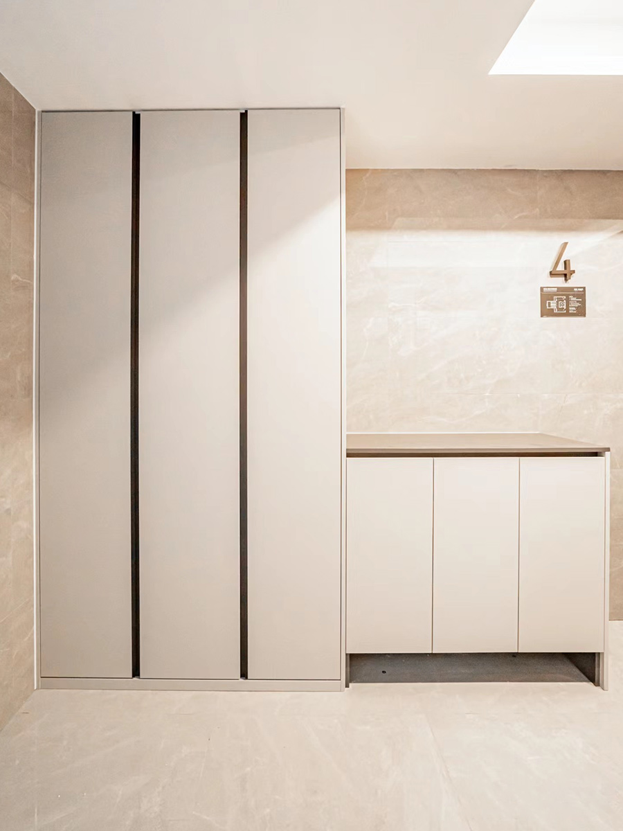 采用一柜到頂?shù)墓耋w設(shè)計(jì),隱形門拉手
