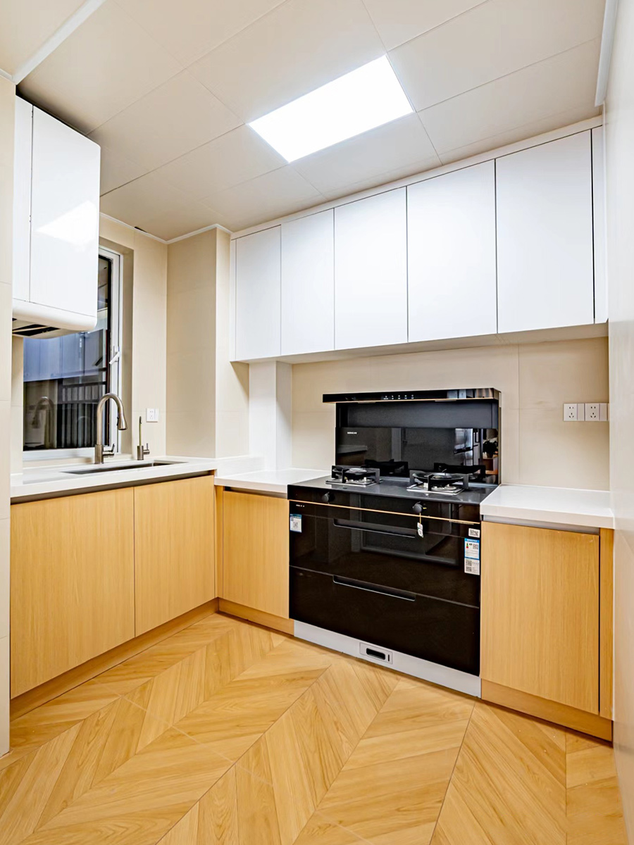 原木+白撞色、木紋磚通鋪,到處都是設計小細節(jié),視覺效果統(tǒng)一。