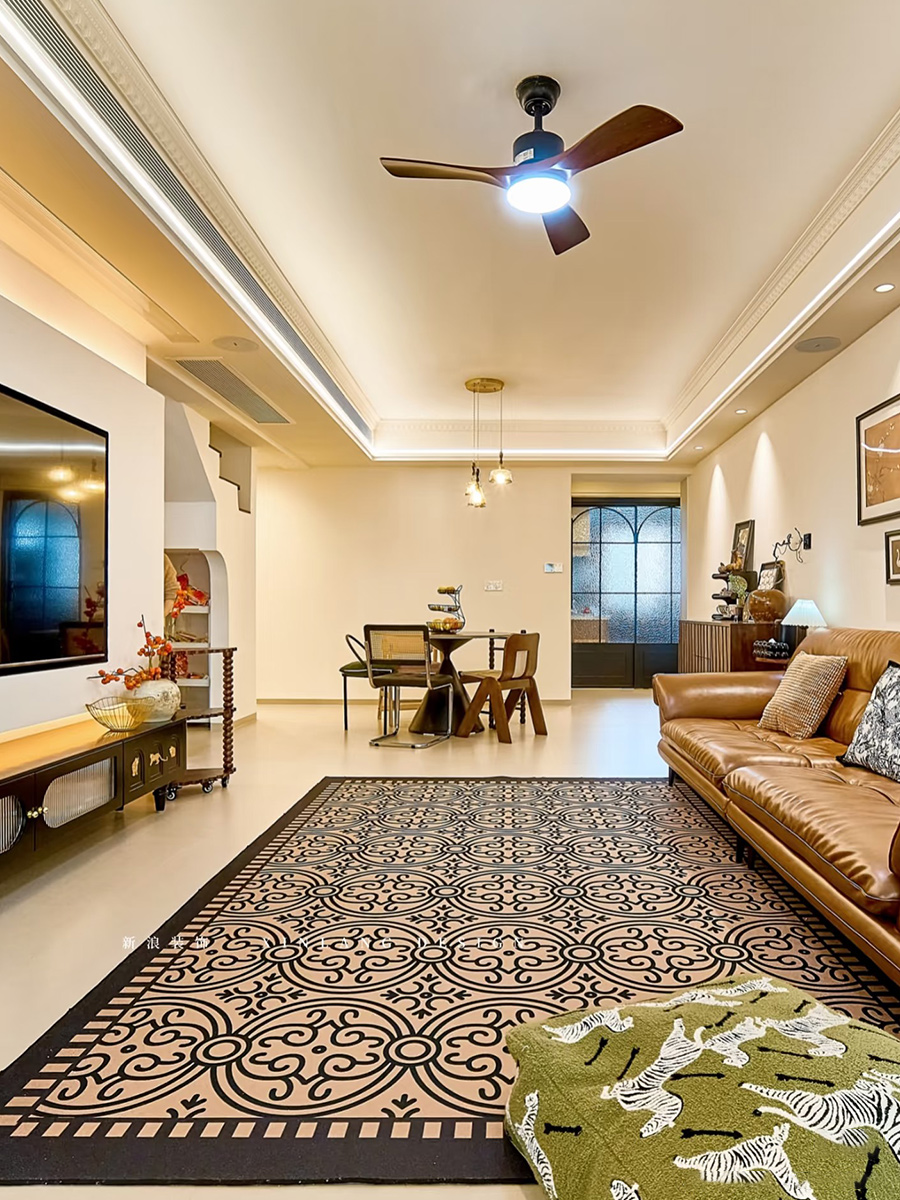 復(fù)古掛畫、品味綠植、風(fēng)扇吊燈、有藝術(shù)感的軟裝飾品的點(diǎn)綴,讓空間層次分明,更有氛圍感