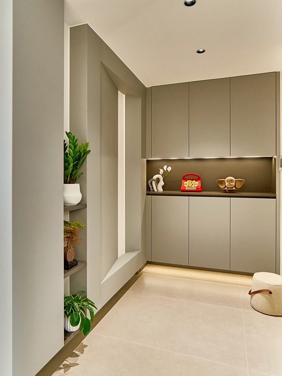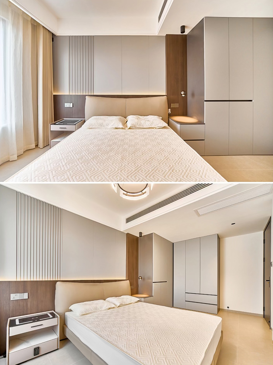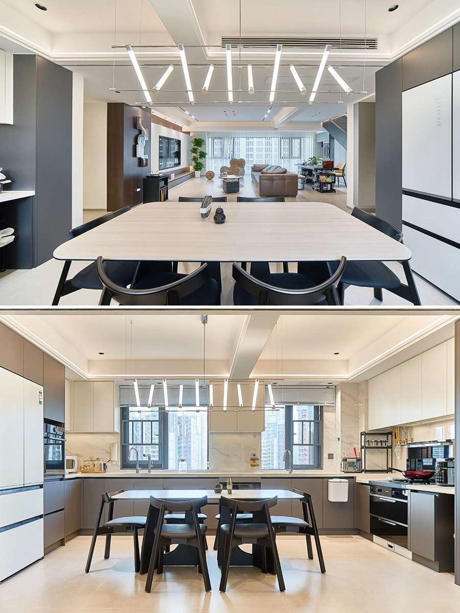 全房無主燈設計,點光源和線性燈帶提供充足照明,柔和溫馨