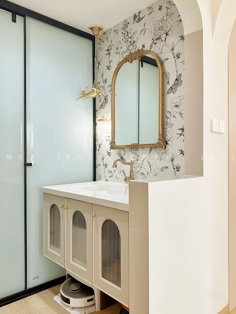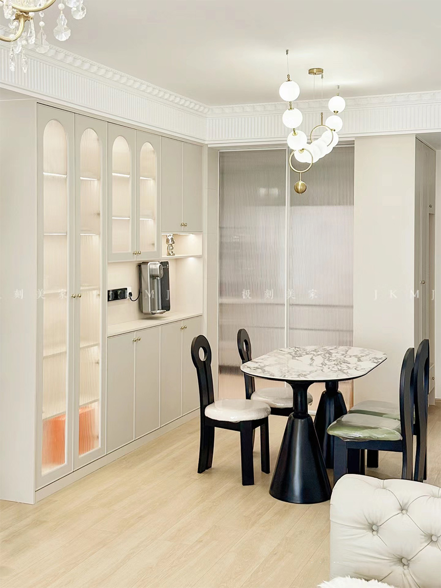 全屋以奶油白為基礎(chǔ)色調(diào),搭配法式吊燈、掛畫,整體更有氛圍感