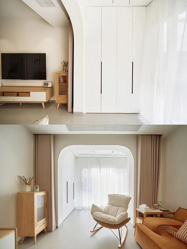 硬裝主打大白墻和木飾面,以軟裝來(lái)增添家里的氛圍感