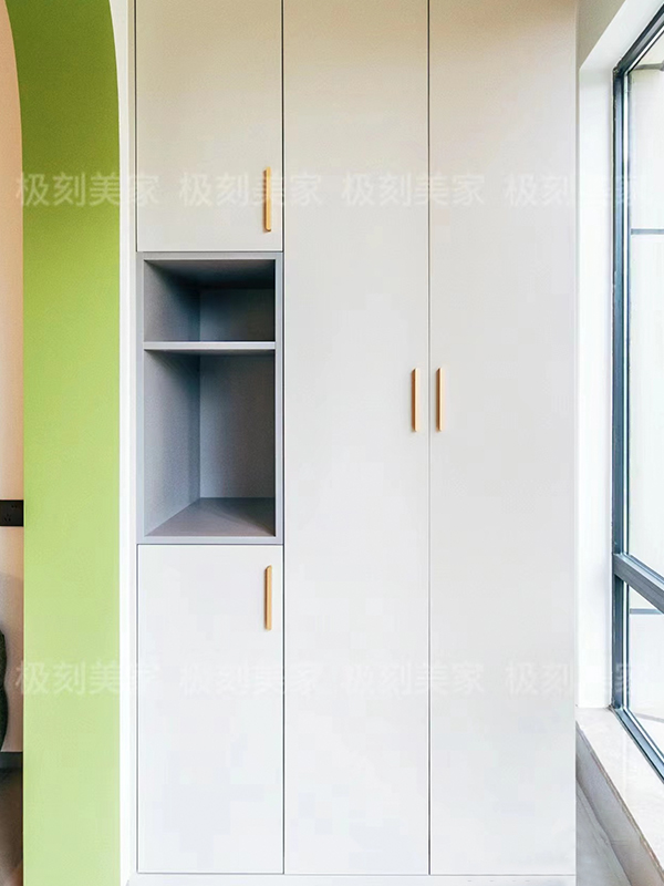 全屋高端定制:柜體板材18厚杉木實芯板,柜門有pet膚感、高光、超晶、五金使用原裝進口奧地利百隆五金