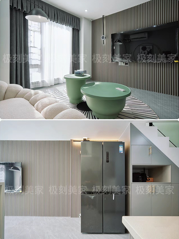 電視背景墻采用布里奇橡木格柵,高級又好看