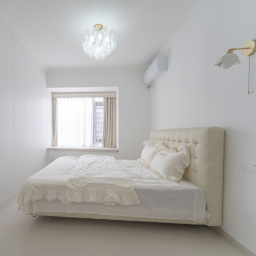 空間整體色調(diào)為白色與木色,色調(diào)溫潤細(xì)膩,沉穩(wěn)舒適