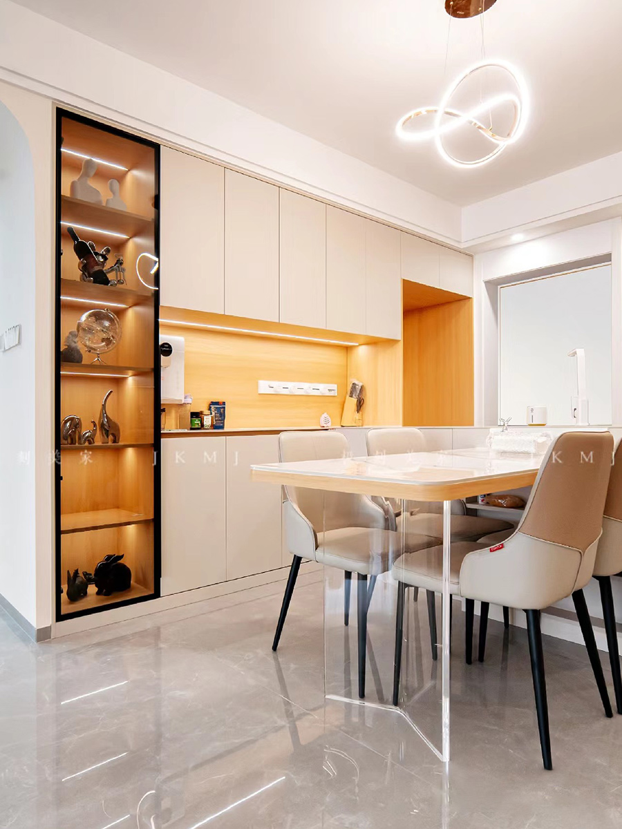 內(nèi)嵌燈帶搭配木質(zhì)柜門,整體氛圍感真的絕了