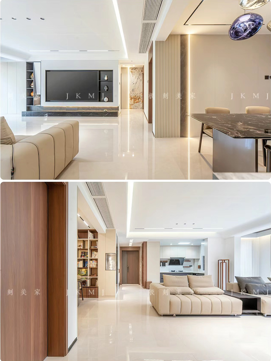 雙眼皮吊頂搭配無主燈設計,大橫廳空間更顯大