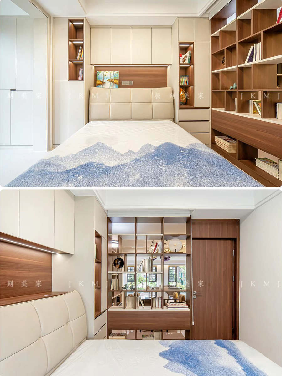 臥室都做書桌+書柜一體化設計,書香氣滿滿