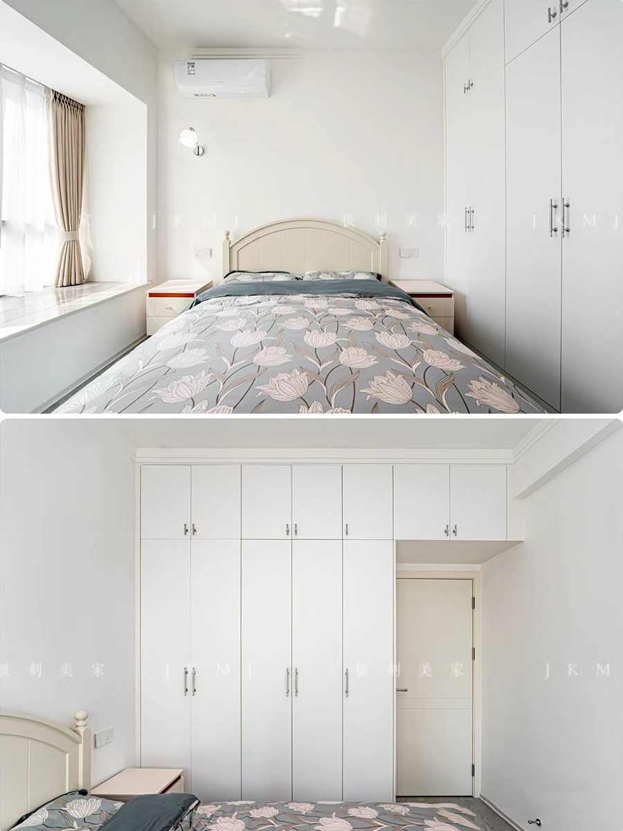 臥室柜采用琥珀白搭配軟裝家具,營(yíng)造出溫馨自然的氛圍