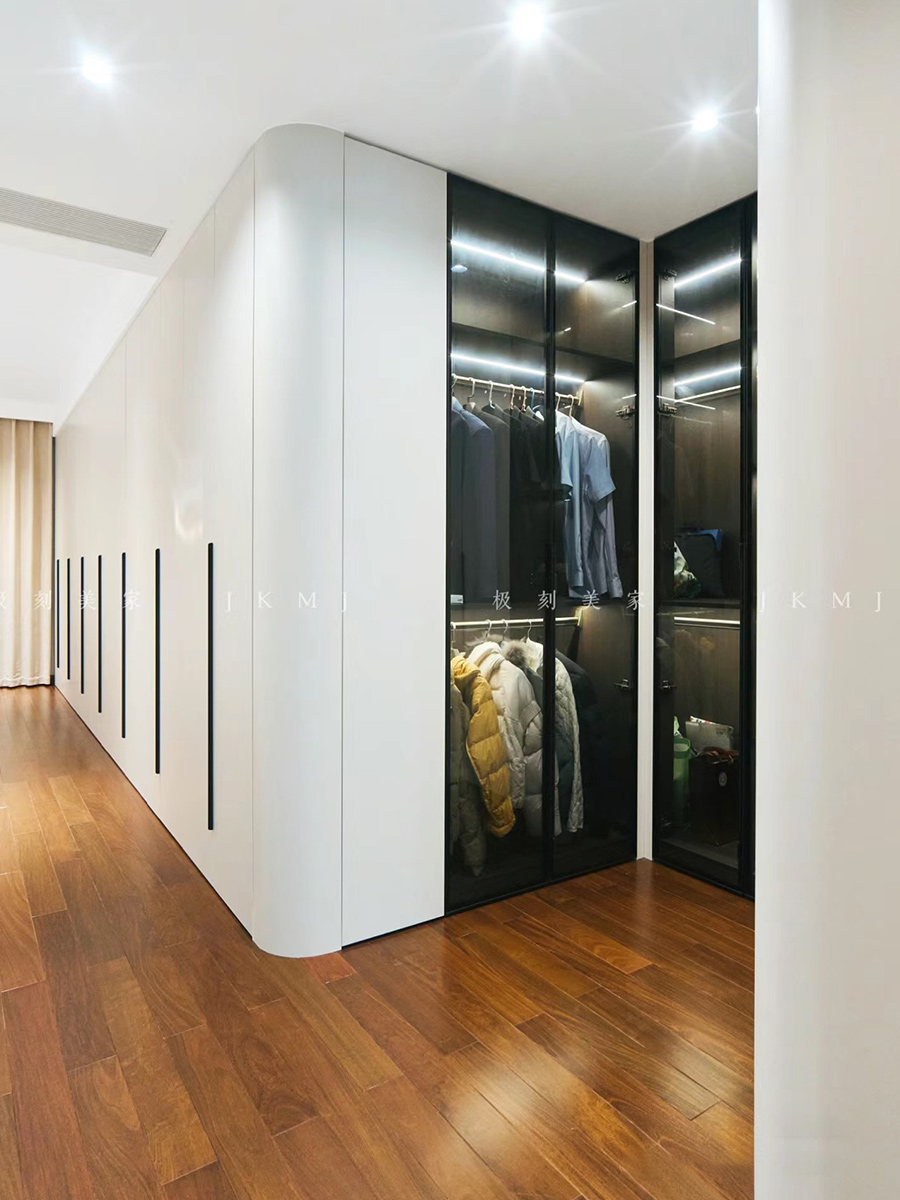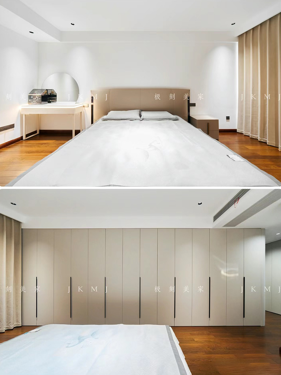 主臥利用空間動線做滿墻衣柜,充分利用空間做收納