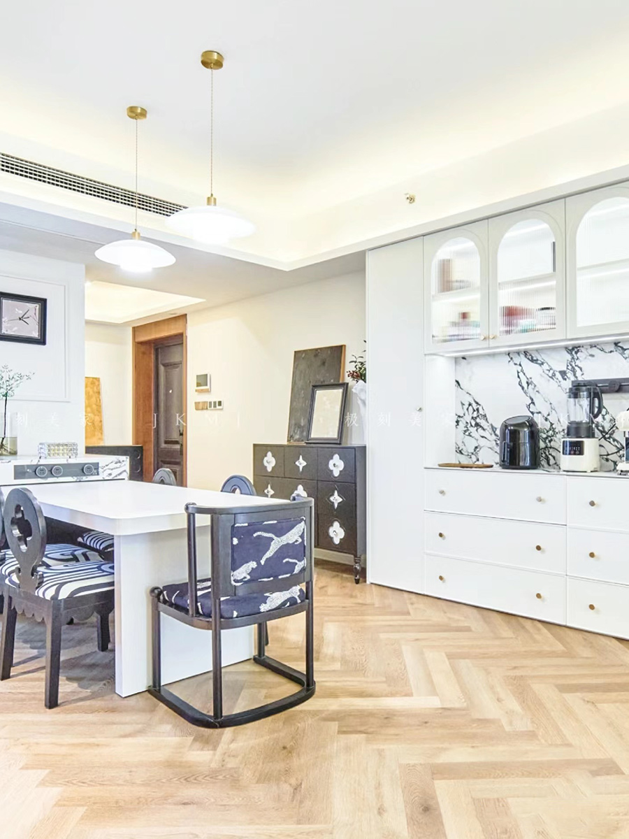 全屋同款同色同造型,穿插黑色成品柜,增添氛圍感