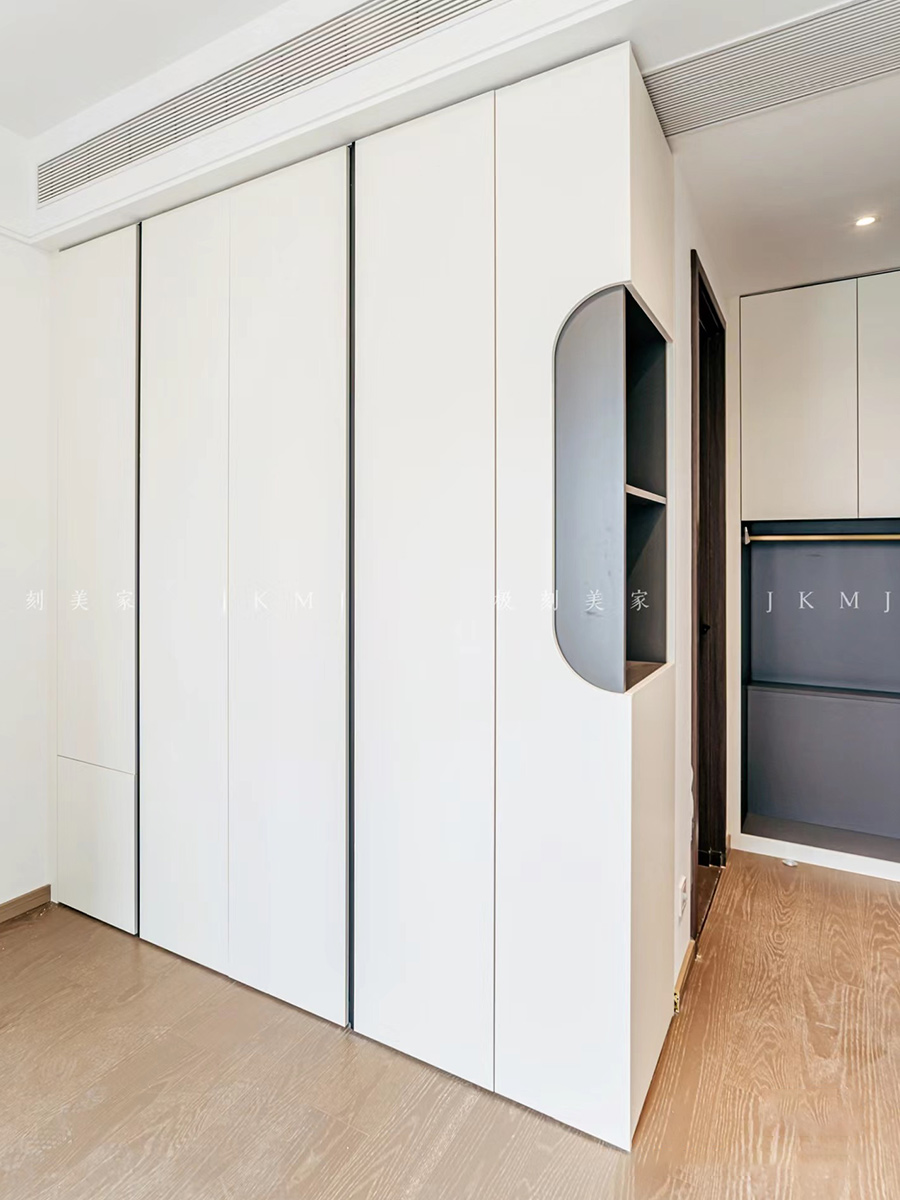 全屋衣柜均采用通體型拉手設(shè)計(jì),簡(jiǎn)單又高級(jí)