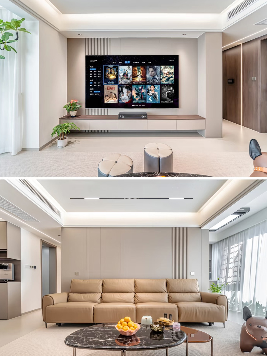 電視背景墻做簡約造型,懸浮抽屜,好打理衛(wèi)生