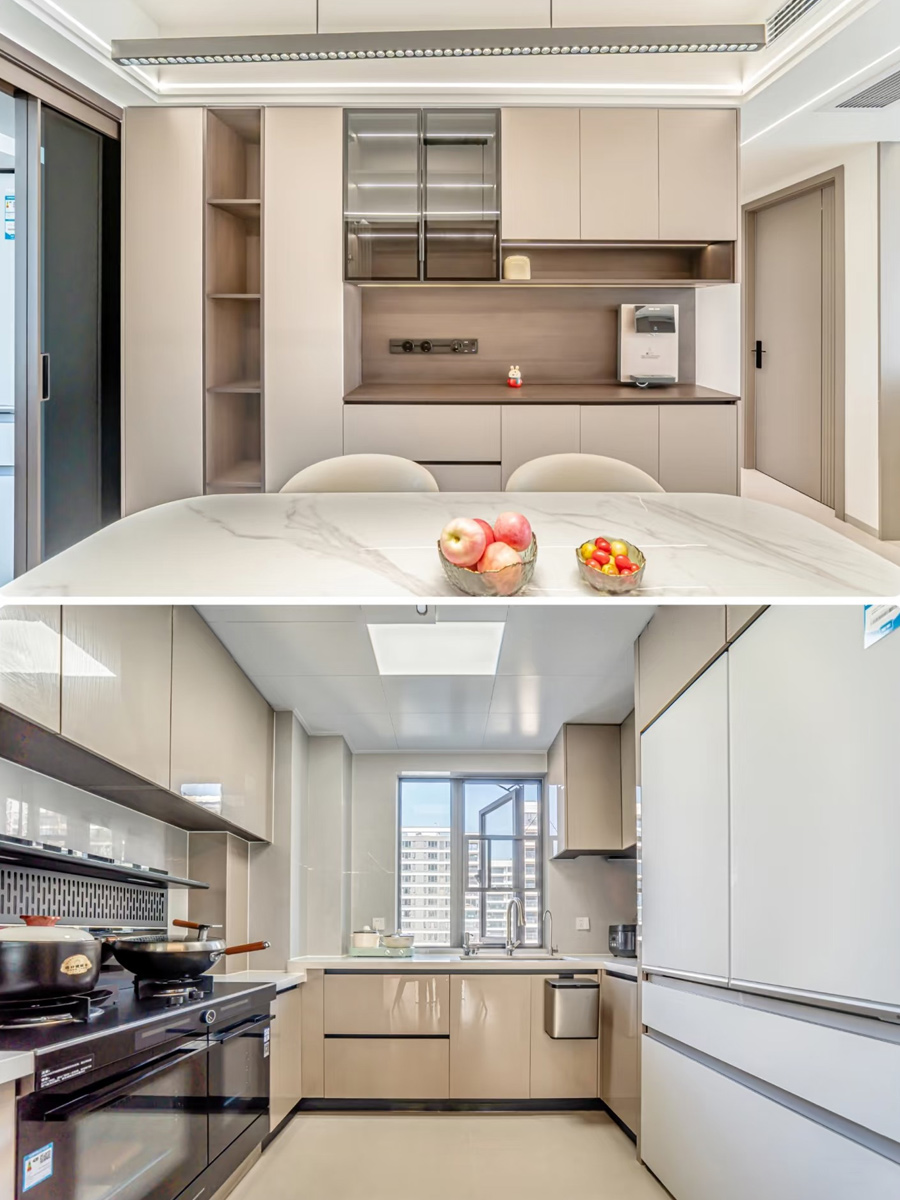 三聯(lián)動玻璃廚房門,可開可閉,通透流暢,東西方便