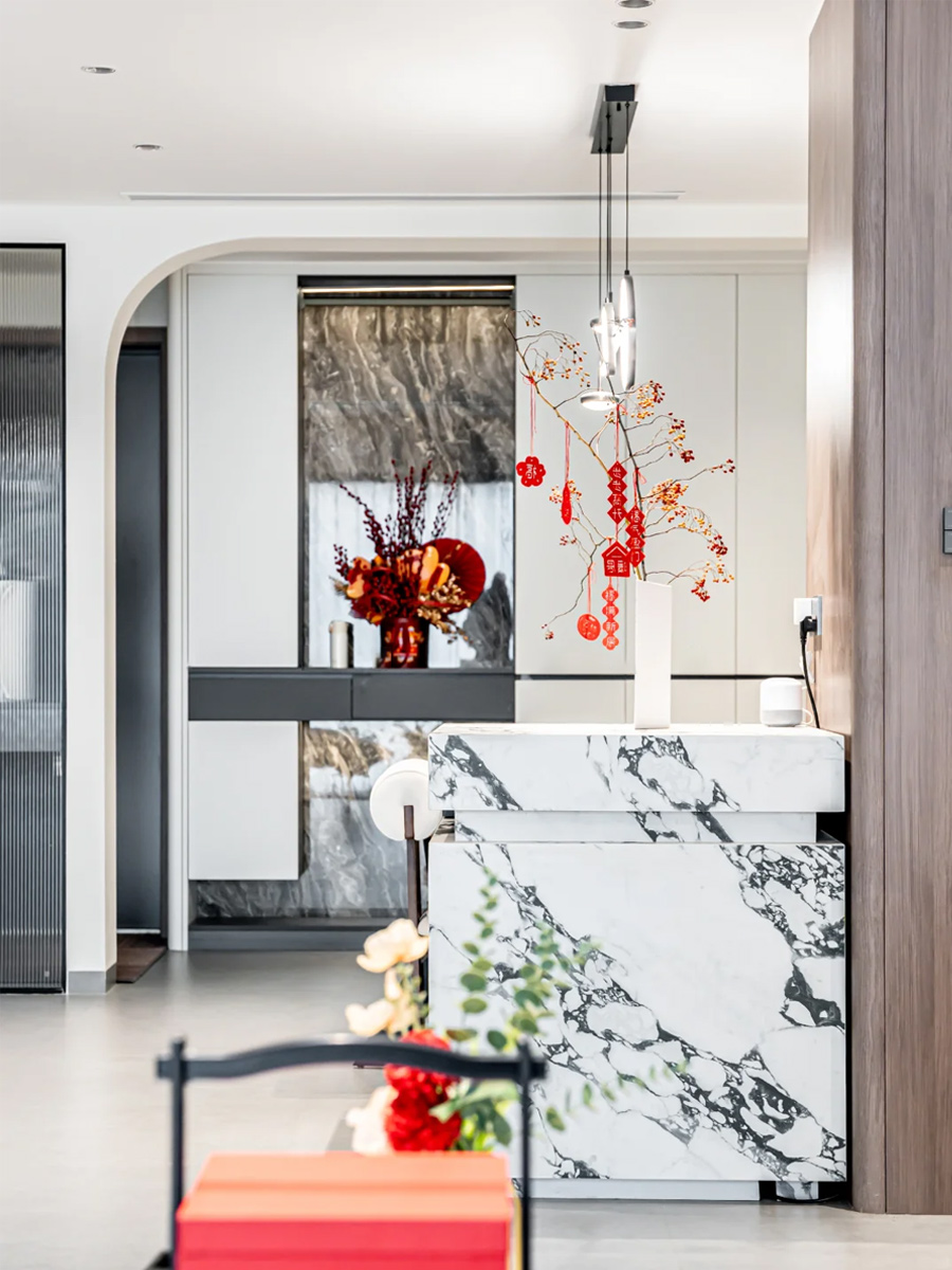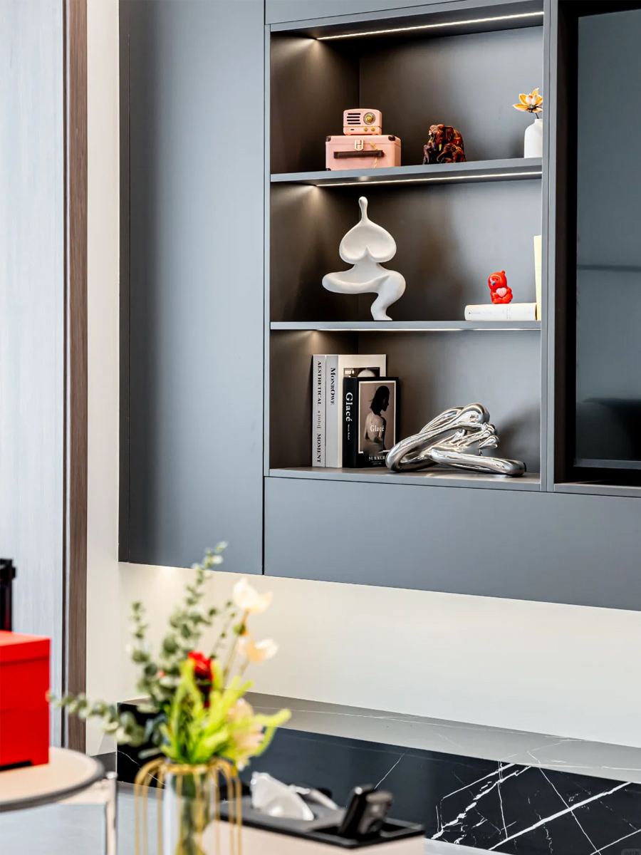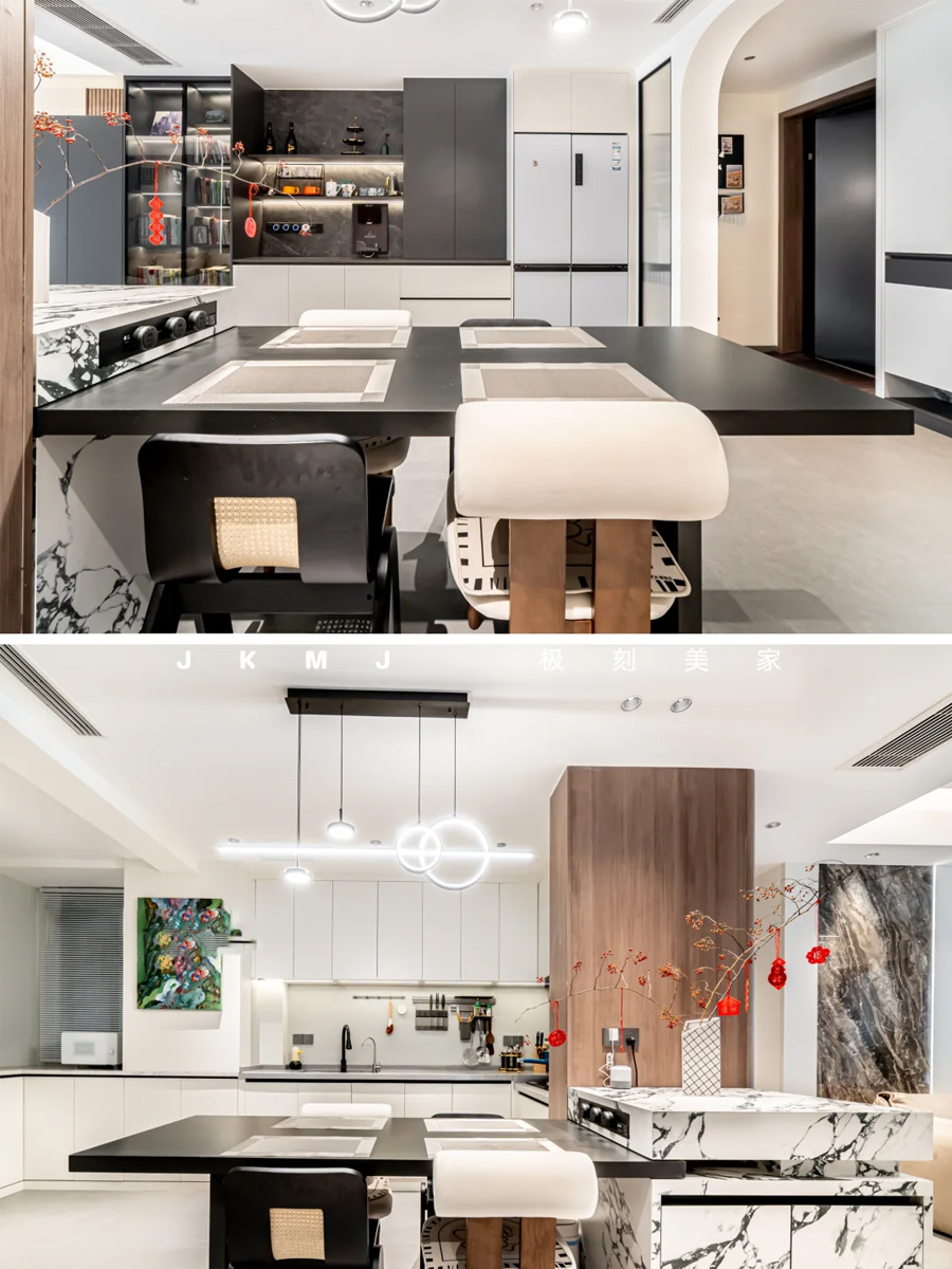 餐邊柜和電視墻都用了巖板材質(zhì),質(zhì)感滿分!巖板的紋理和光澤讓空間顯得更有層次感,而且超級(jí)好打理,適合懶人哈哈~