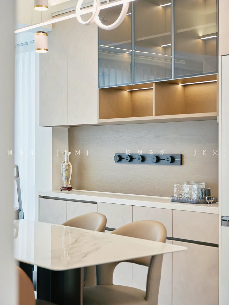 餐邊柜采用零嵌入式,充分利用儲物空間,讓整體更顯大