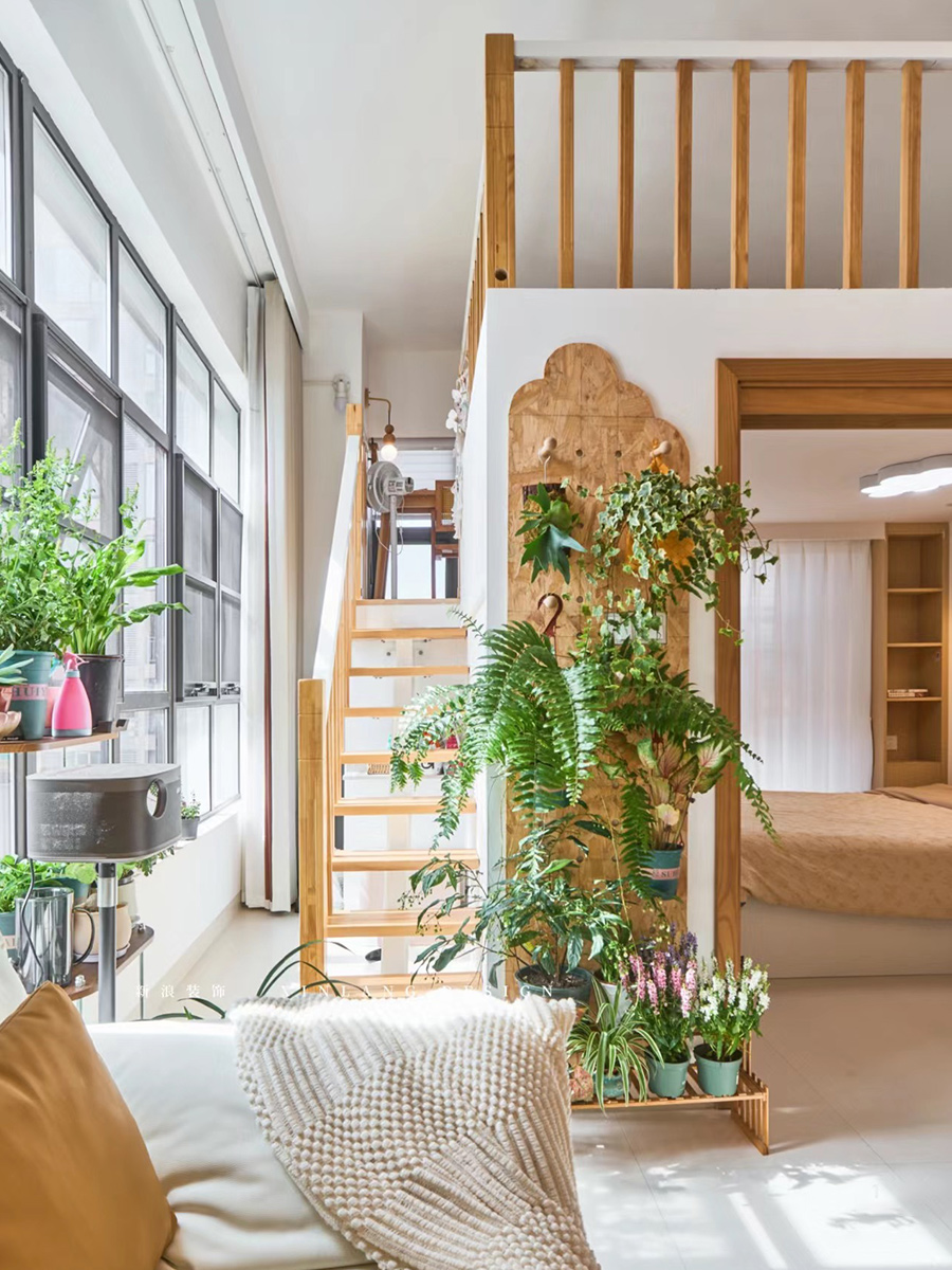 房子是邊戶,大落地窗陽(yáng)光非常好,一樓隔出來(lái)一個(gè)小臥室,樓上榻榻米,可供朋友聚會(huì)或者留宿。