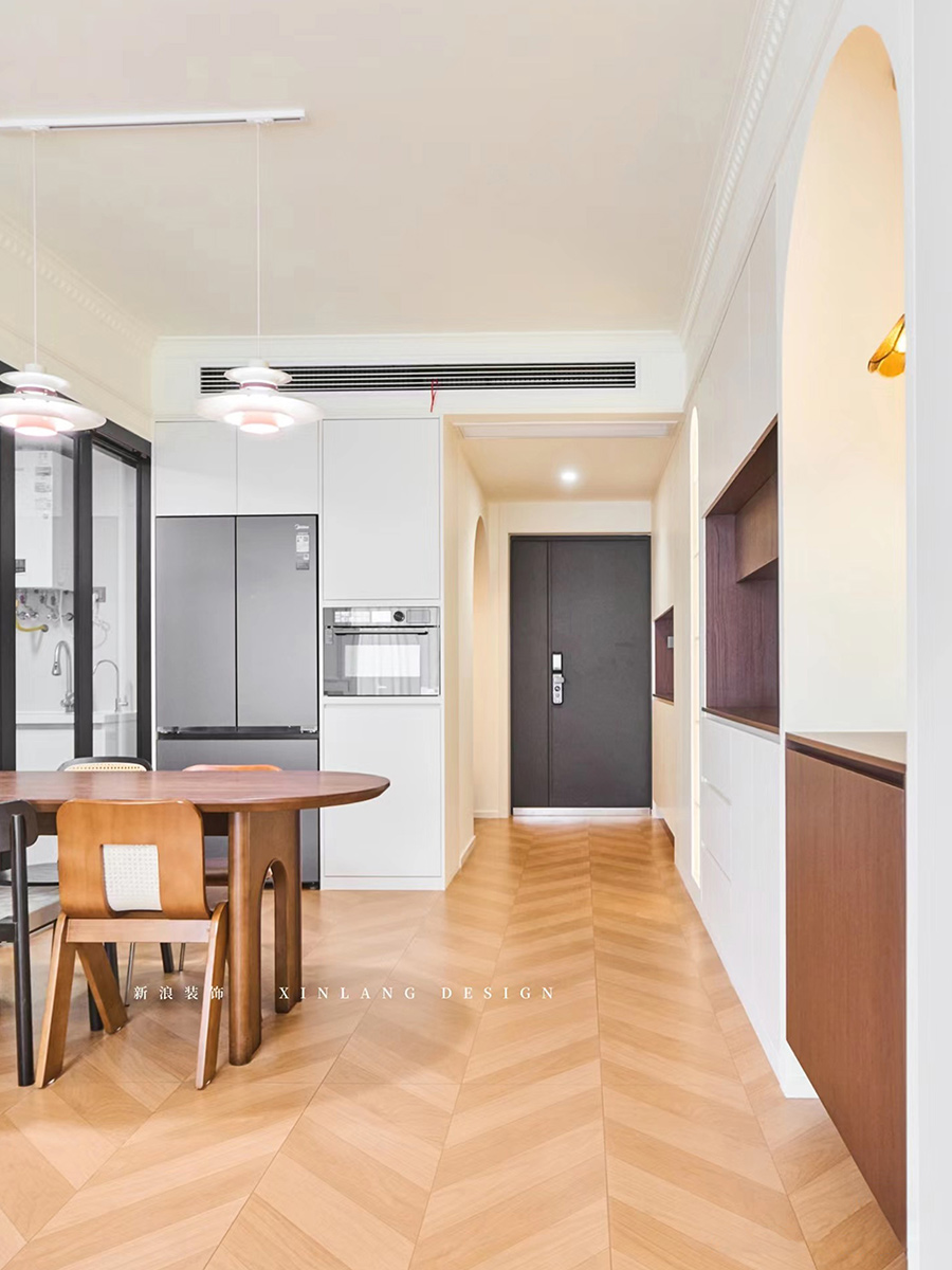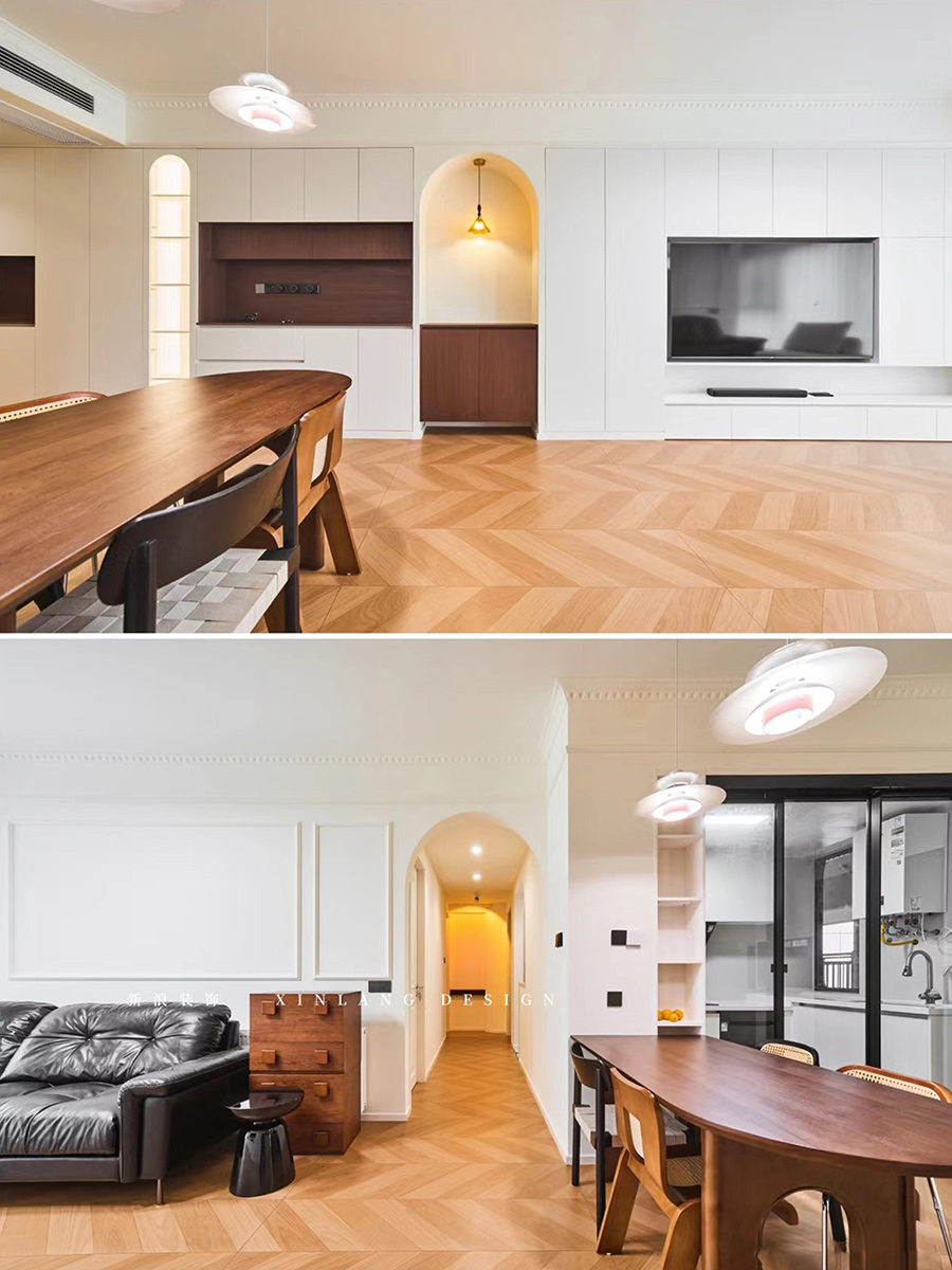 本案結(jié)合奶油風(fēng)格的柔和溫馨與復(fù)古風(fēng)格的經(jīng)典懷舊,打造出一種既現(xiàn)代又充滿故事感的居住空間