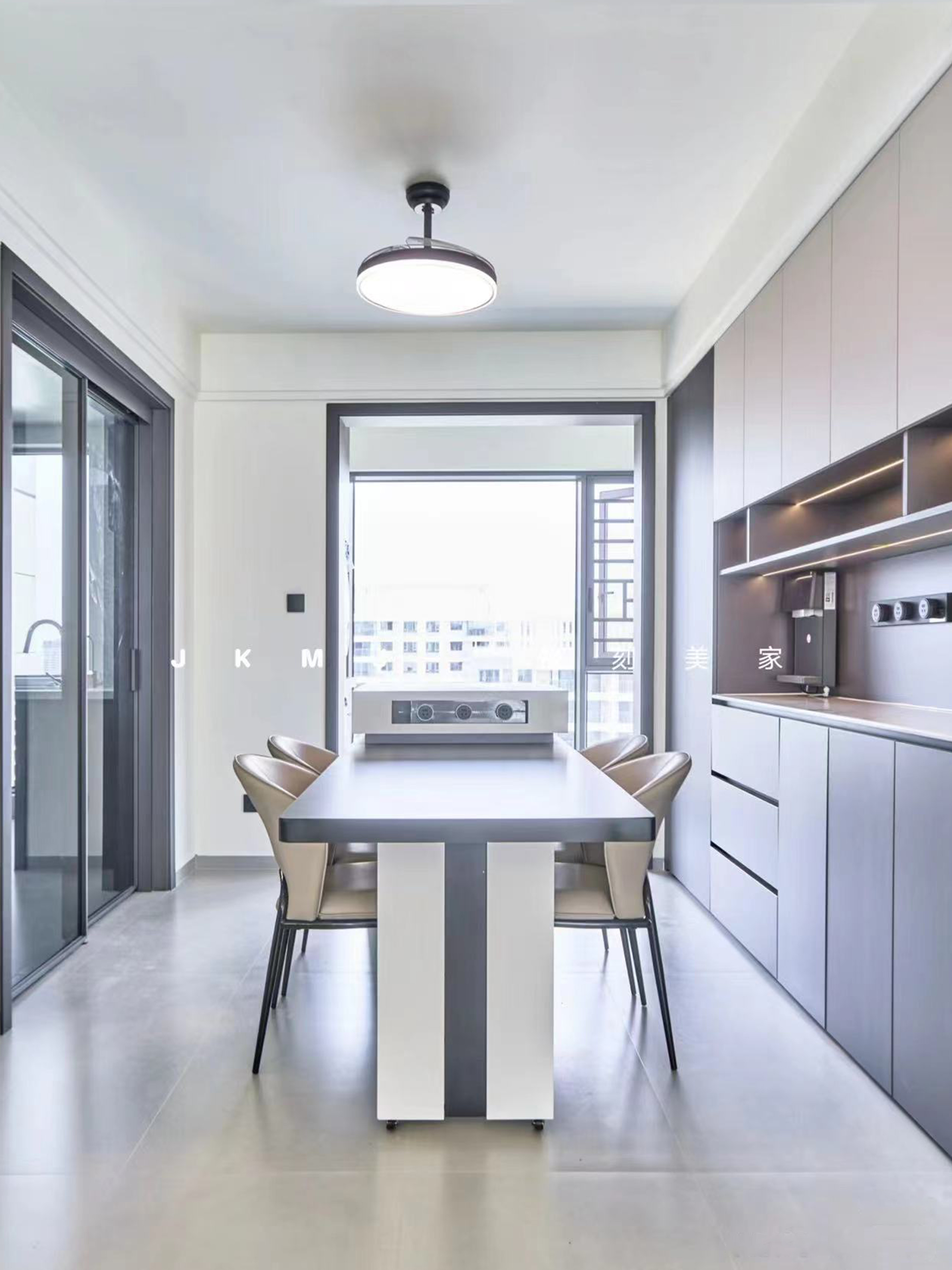 簡約電視背景,電視柜直接落地,減少藏灰,好打理搞衛(wèi)生。餐邊柜結(jié)合餐島臺設(shè)計,留出移動插座,小家電、吃火鍋、烤肉等都方便。