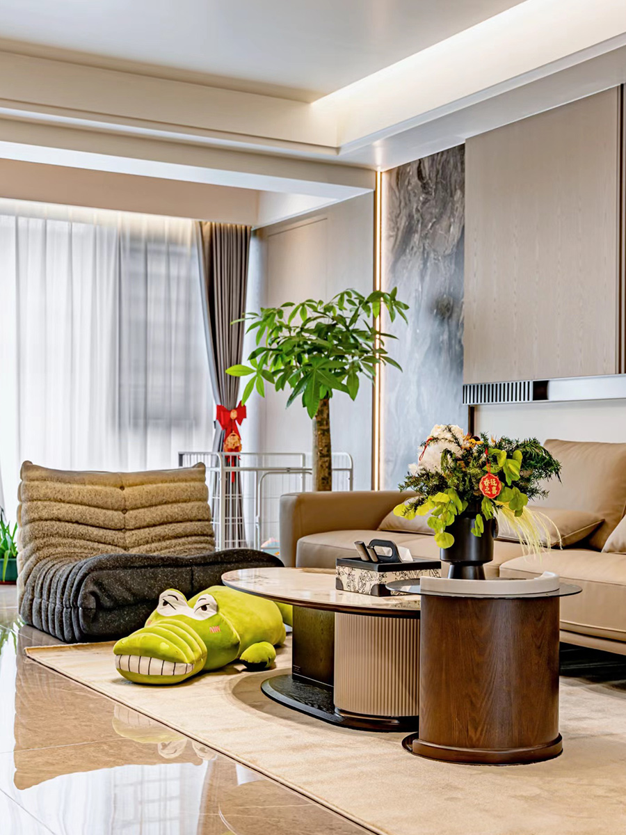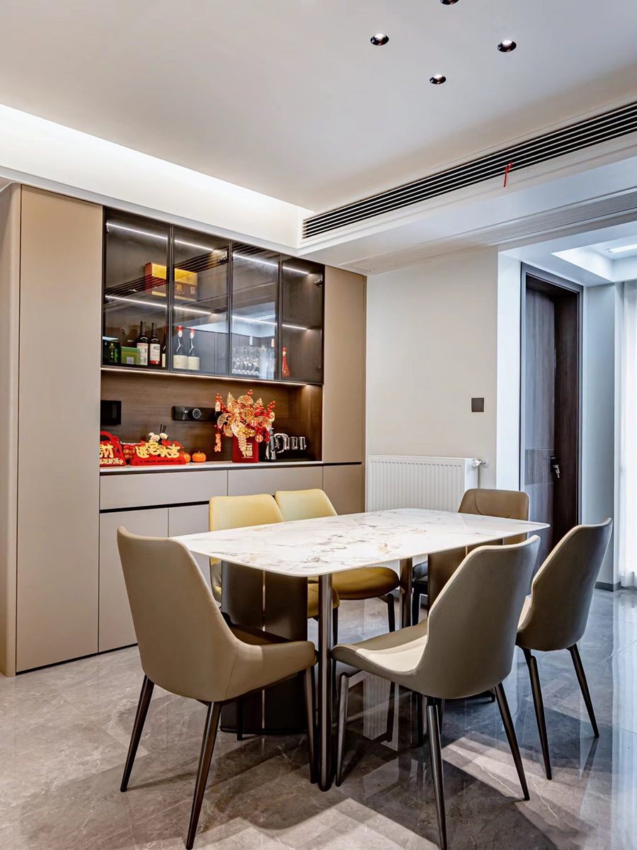 客餐廳一體式設計,搭配輕奢感裝飾更好的營造家庭氛圍感